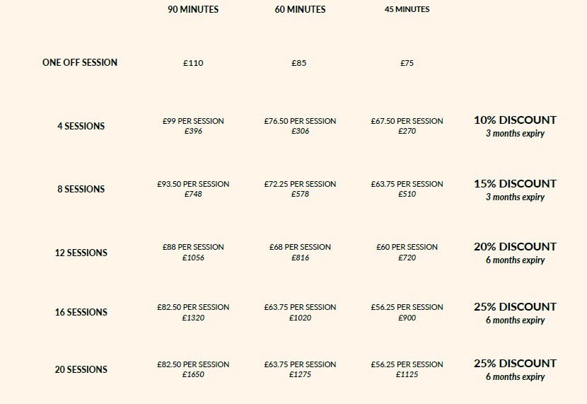 PACKAGES COVER 1-1 CLINICAL YOGA: PRICING All packages have an expiry from date of purchase SELECTED packages may qualify for an INTEREST FREE payment plan BOOK AN APPOINTMENT VIEW CORPORATE PACKAGES